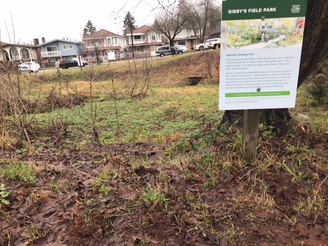 Gibby’s Field, nestled in East Vancouver’s Kensington–Cedar Cottage neighbourhood, occupies the last trace of historical Gibson’s Creek — once a thriving waterway rich with salmon and trout. As one of the earliest daylighting efforts in the City’s Rain City Strategy, the City of Vancouver entrusted Landesign with transforming this 0.15-hectare parcel into a resilient, community-centered green space.